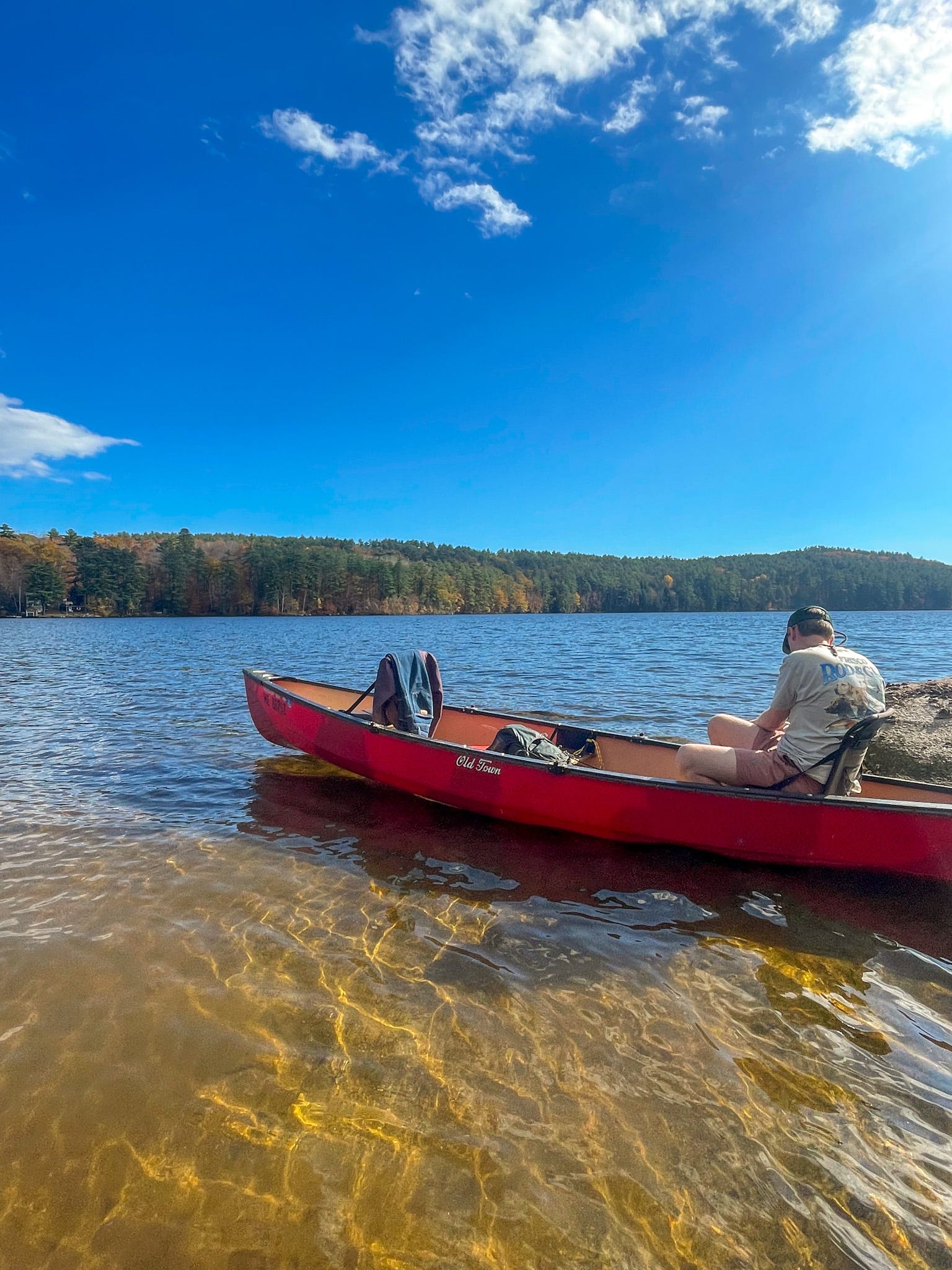We paddled out to a sandbar below our frequently visited bald eagle nest. The lake was quiet with most boats long-removed for the season. The just-past-peak foliage on pleasant mountain loomed over us making everything feel more majestic.