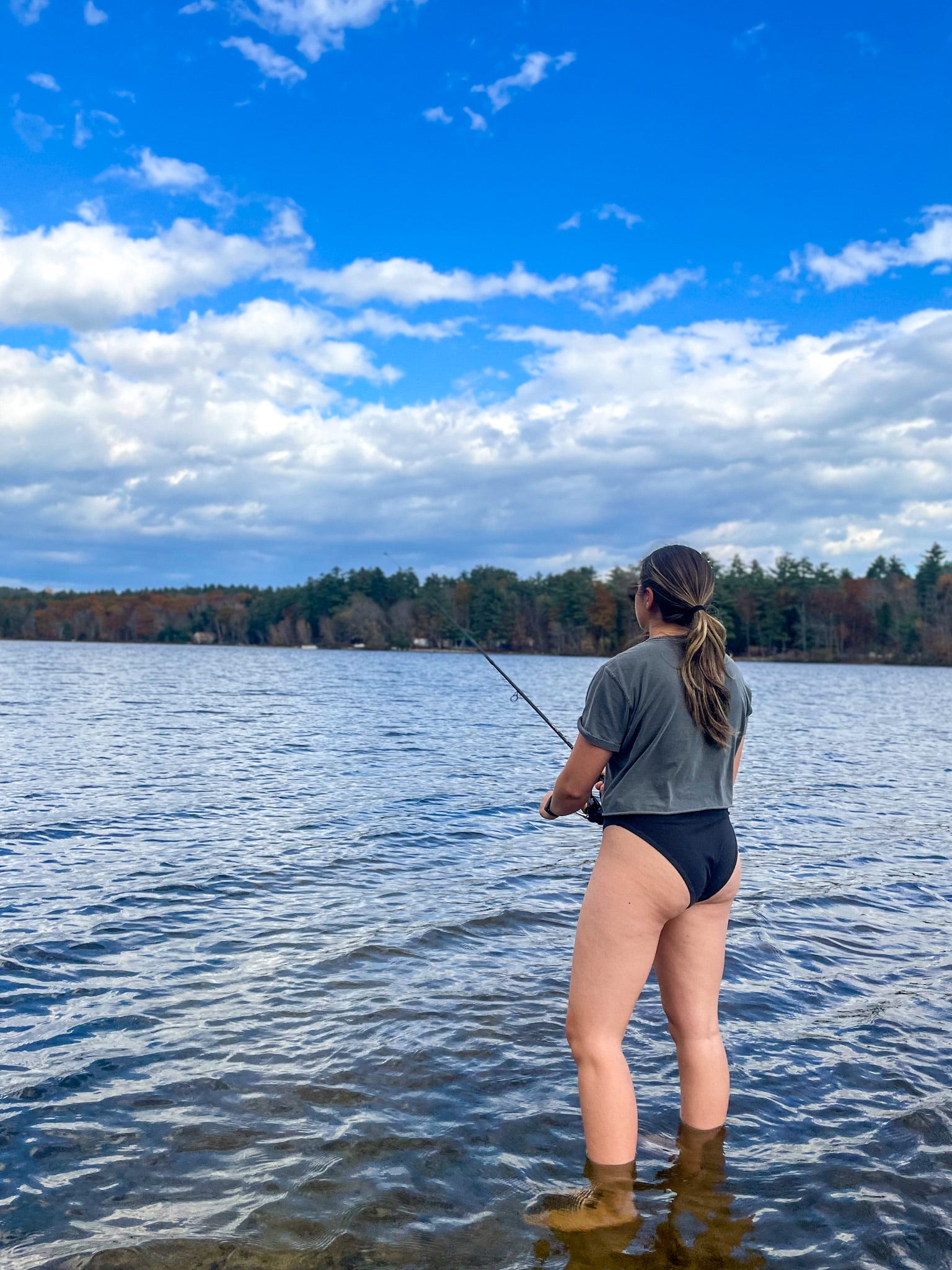 We ended up anchoring in the sandbar and waded out to the edges of the sandbar, me in my underwear and Hayden with his fishing rod. To my sheer surprise on my third cast I caught a decent size yellow perch and Hayden followed it up catching a young small mouth bass.